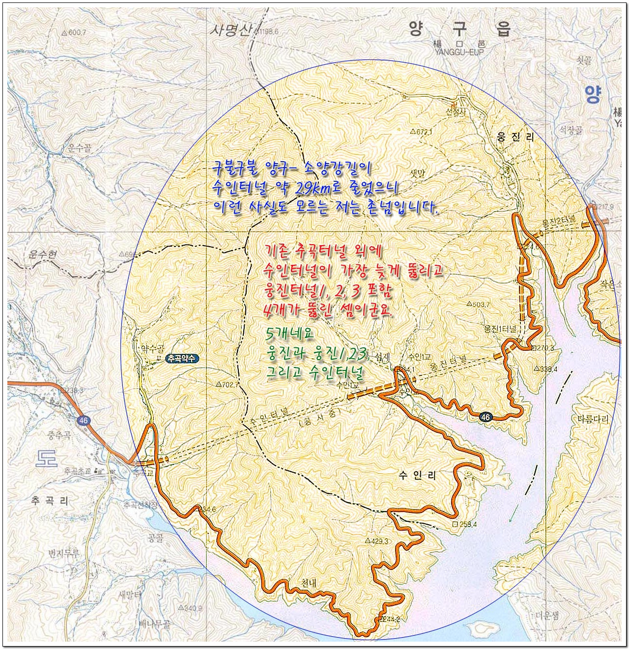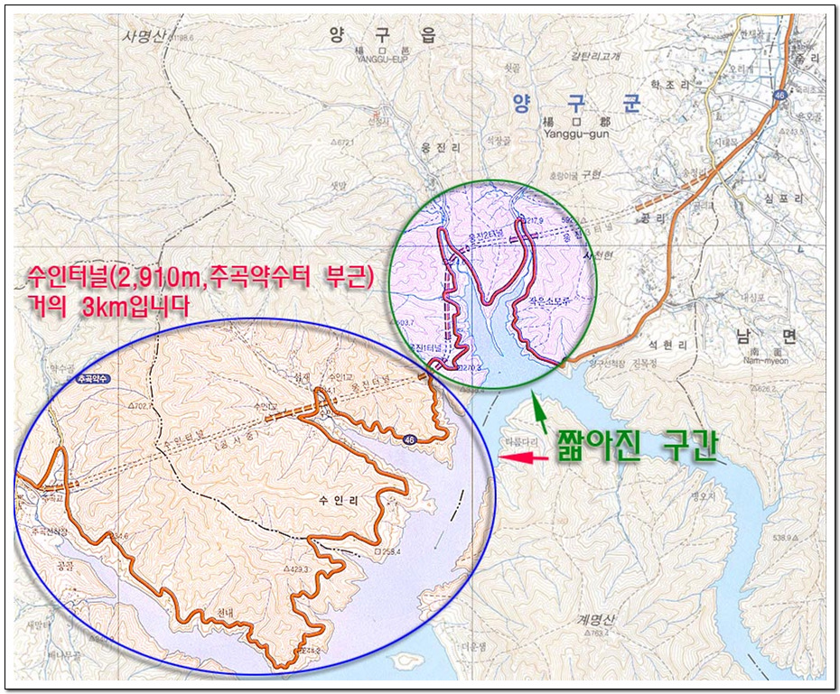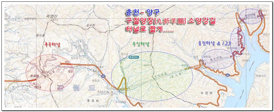 °¿øµµ ÀÎÁ¦±º ¿ë´ë¸®¿Í °í¼º±º ¿ø¾Ï¸®¸¦ ¿¬°áÇÏ´Â 3.7kmÀÇ ¹Ì½Ã·É ÅͳΠ»ý°¢ÀÌ ³¯ Á¤µµÀÔ´Ï´Ù.