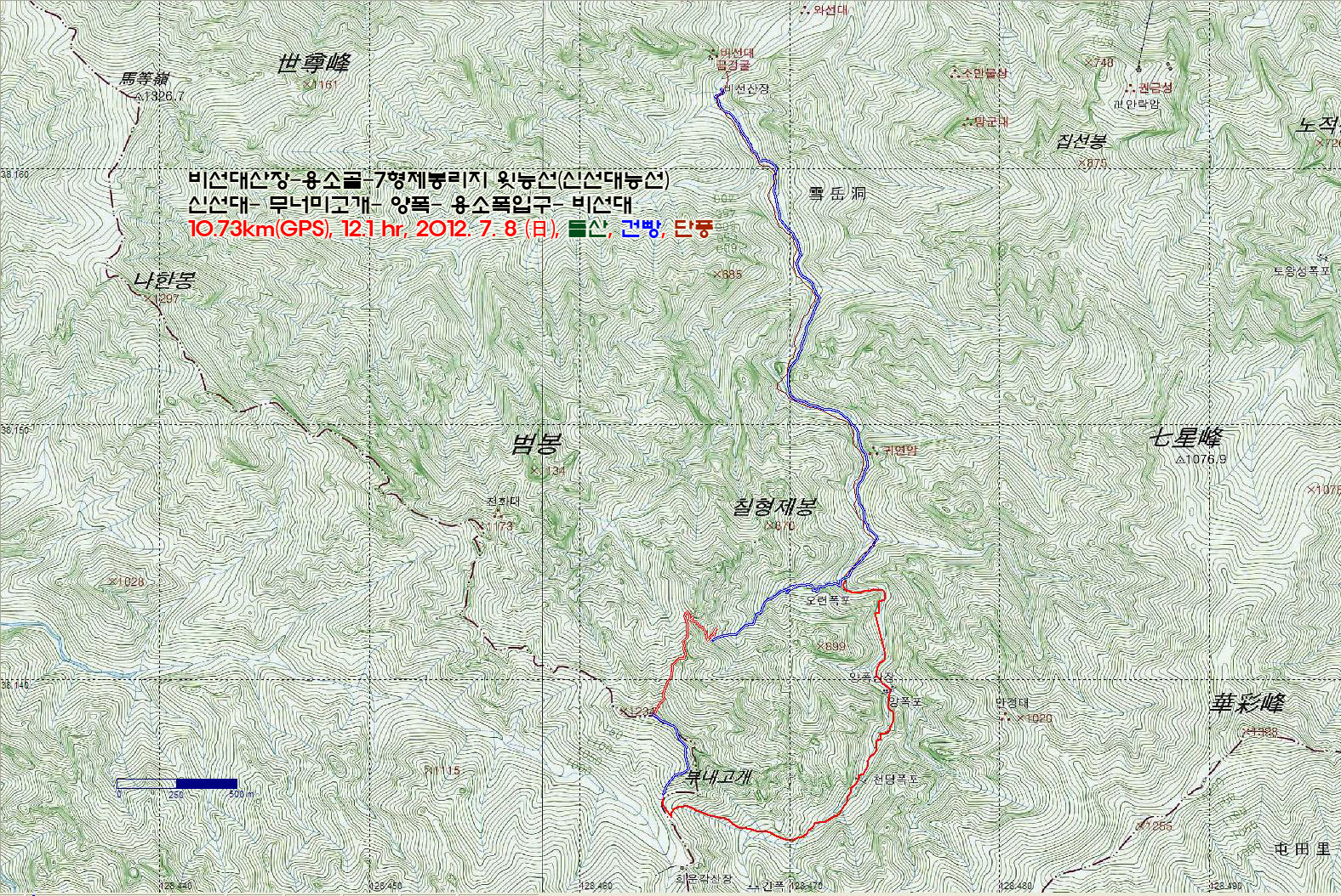 (ªÀº ¿ë¼Ò°ñ 1.022km ¿À¸§¿¡ 4½Ã°£, ¿ë¼Ò°ñ »ó·ù ¿ÍÆø¿¡¼ ´É¼± ¾ÈºÎ±îÁö 343m 23ºÐ)
