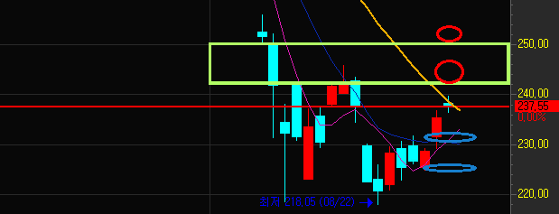 ¿À´Ã ±âÁØÀº 237.50 ÀÔ´Ï´Ù º¸ÇÕ ÀÌ»ó Ãâ¹ßÀ̶ó¸é ±âÁØÀº ÁöÁöüũ ÀÔ´Ï´Ù. ÀåÁß¿¡ »ì¦ ¹¶°µ´Ù¸é ±×¸®°í