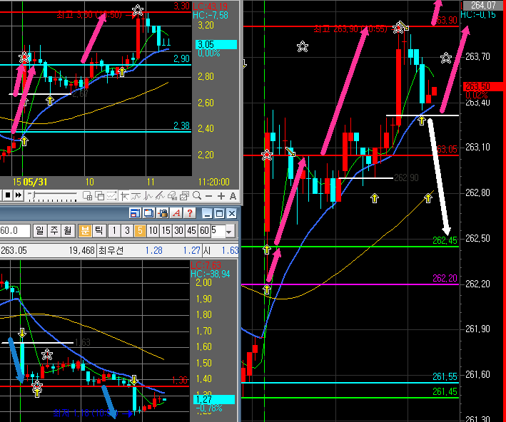 ¿À´ÃÀÇ ±âÁذ¡´Â 262.20 ±âÁØÀÌ»ó »ó¸¶µð´Â 263.05/263.90/265.00/265.70 ±âÁØÀÌÇÏ Çϸ¶µð´Â 261.55/260.65 ¿£Æ®¸®¶óÀÎÀÇ »óµ¹¶óÀÎÀº 262.45 Çϵ¹¶óÀÎÀº 261.45