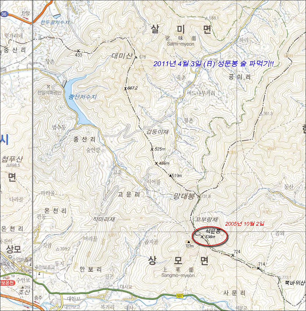 ÃæÁÖ ¿ëõ¸®- x433-´ë¹Ì»ê(ÓÞڶߣ, 678m)-°©µÕÀÌÀç-x525m- x486m- x519m- ¸Á´ëºÀ(¡â731.8)