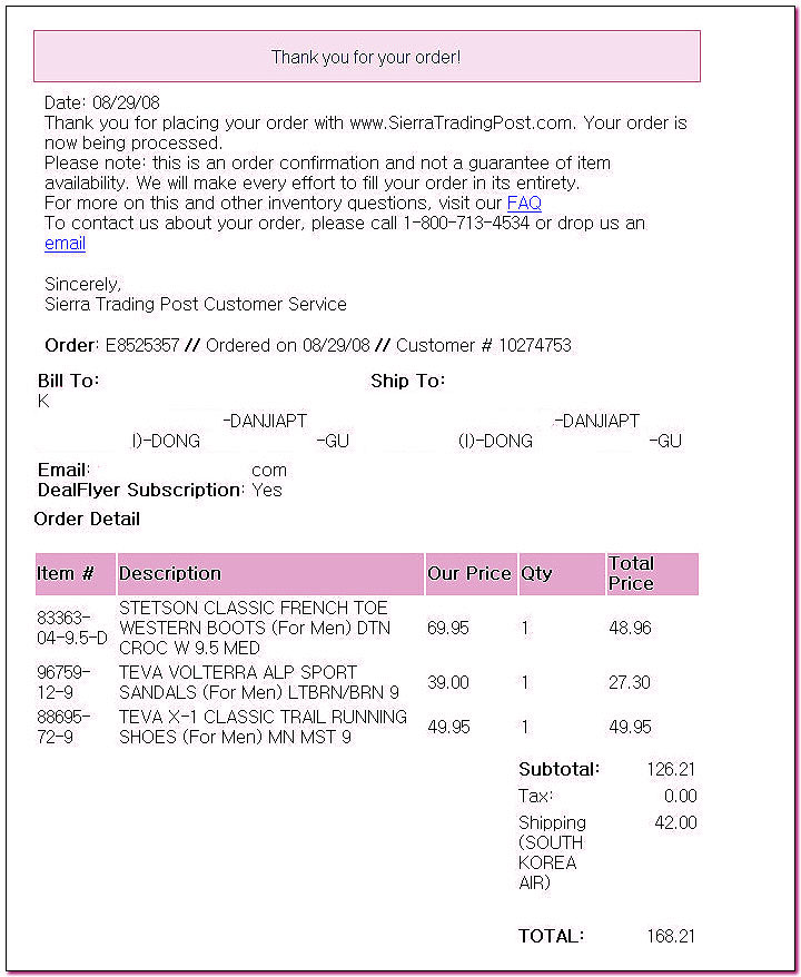 8¿ù29ÀÏ ½Å¹ß ¼ÂÀ» ÁÖ¹®ÇÏ°í ½Ã¿¡¶óÆ®·¹À̵ùÀ¸·ÎºÎÅÍ ÁÖ¹®°¨»ç¿¡ ´ëÇÑ ¸ÞÀÏÀ» ¹Þ¾Ò´Âµ¥,